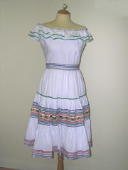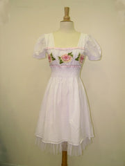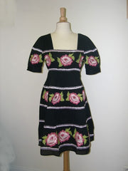 dress in cotton embroidered with colored smocks at the hip and at the short sleeves.with some beadings on the embroidery. size : S/M/L colors : black / white -