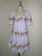 Dress in cotton with flowers embroidered tone on tone with beadings. sizes : S/M/L colors : white / pink / kaki -