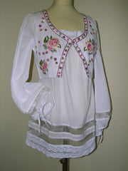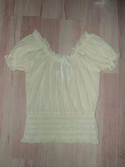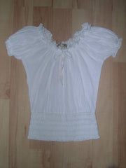 Top in cotton crepe plain with smocks at the waist.(to matching with the skirt hacienda) sizes: S/M/L colours : ivoiry/pink/white -