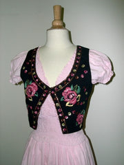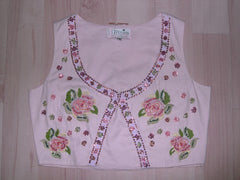 gilet in cotton embroidered on front. size : M / L colors : black / white / pink / green -