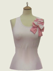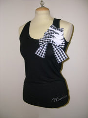 tee-shirt in 95% viscose 5% elasthane with a bow printed vichy size : S/M/L colors : Black/white and pink/white -