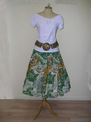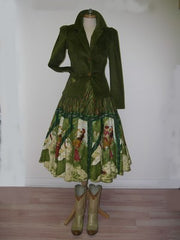 skirt in velvet 100% cotton, printed with western picture and embroidered of sequins. care wash : dry clean size : S/M/L colors : kaki