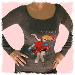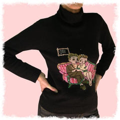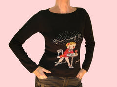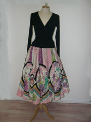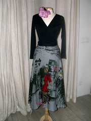 skirt in fibranne 100% cotton, printed with a woman with her dog in Paris and embroidered of sequins. care wash : dry clean size : S/M/L colors : original -