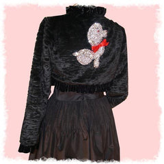 Composition : 100 % polyestere Cleaning: Dryclean Waist:S: 38/40M: 40/42 The bolero is in imitation astrakan with a poodle in strass on back. -
